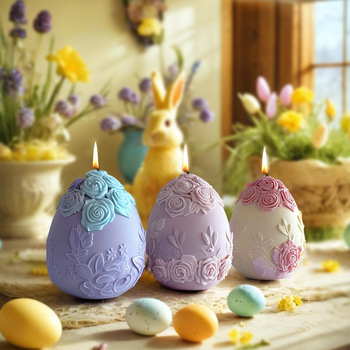 Hoa Hoa Phục Sinh Trứng Nến Khuôn Tự Làm Hương Liệu Thạch Cao Handmade Xà Phòng Hình Bầu Dục 3D Silicone Khuôn Lễ Hội Handmade Vui Vẻ Công Cụ